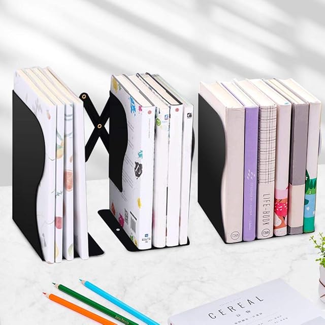 Youtumall ブックスタンド 2個入り 本立て 伸縮自在 卓上収納 倒れない ブックエンド 金属製 仕切りスタンド デスク整理 (2個-黒)