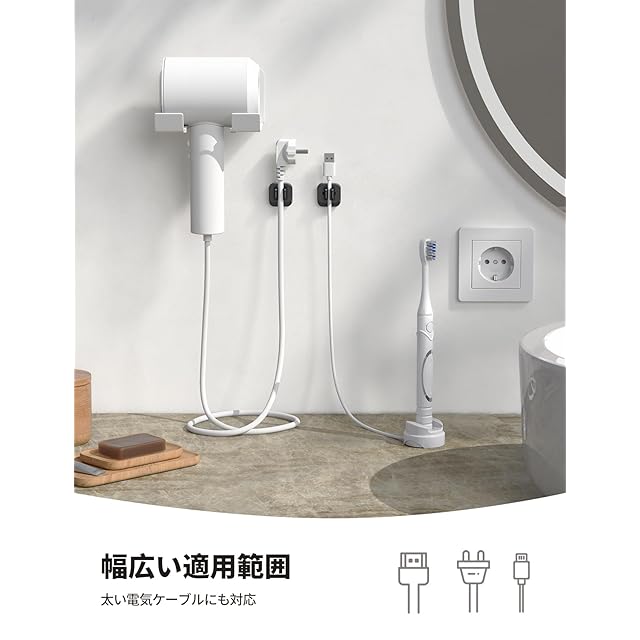 【強力粘着・両面テープ】強力な両面テープを使用して、木製やガラス製、プラスチック製や大理石などの色々な材質に対応でき、剝がれ落ちる心配はありません。卓上や机の裏のような場所の他、家具の側面、車内などの垂直面にもケーブルをすっきり固定できます。ご注意❗❗しっかり貼り付けるため、きれいにしたフラットな所に貼った方がいいです。しっくい塗りの壁に貼るのはお勧めしません。⭐車内に利用するならなるべく直射日光を避けてください。⭐取り付け後、粘着力をより安定するために、ご使用の前に24時間をお待ちください。