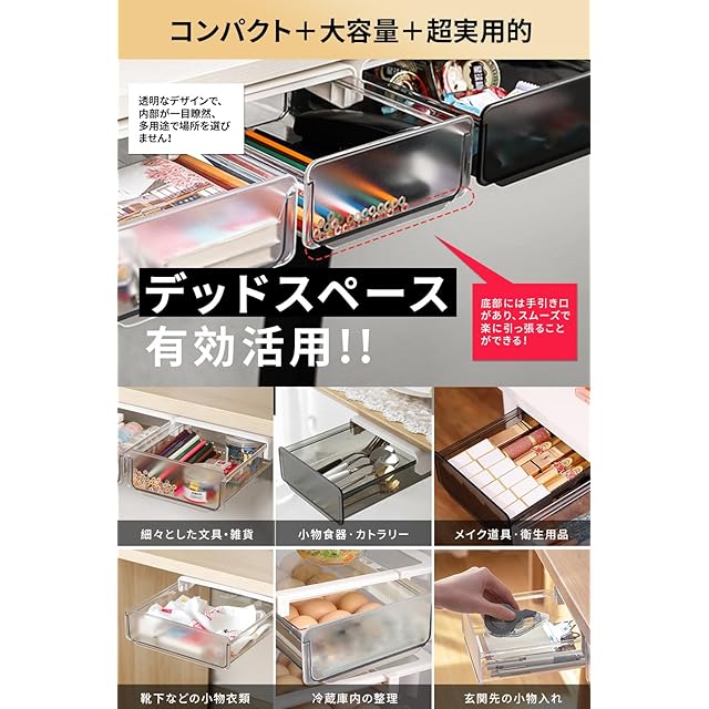 【様々な場所に】万能の収納製品です、soomil卓下式収納箱は、オフィス、書斎、台所、浴室などに適用可能です。文房具用品、はさみ、リモコン、食器、化粧品など、さまざまな小物を収納できる優れた万能収納箱であり、どこに置くかわからない小物をきれいに収納することができます。また、防塵効果もあり、小物を全く新しい状態に保つことができ、小物の収納にピッタリです。