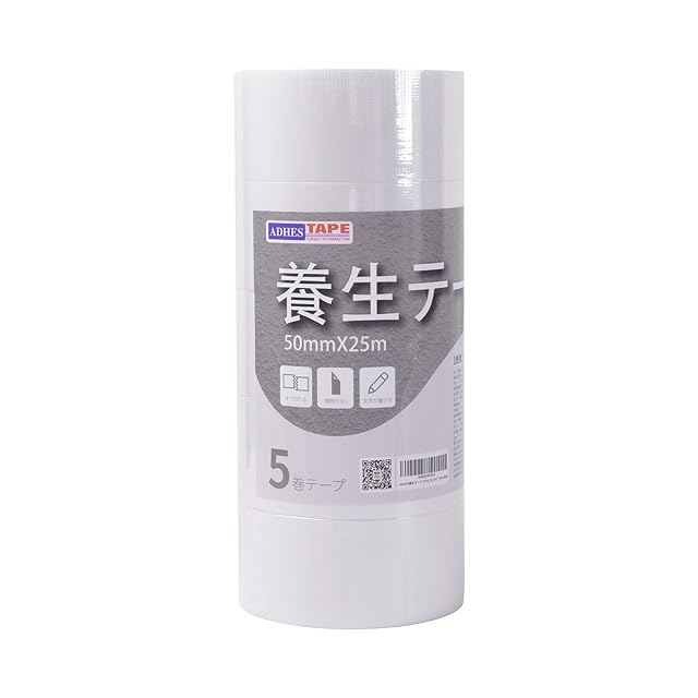 ADHES 養生テープ 白 ガムテープ布 はがせる 窓ガラス 仮固定用 50mmⅹ25m 5巻入り (YC16-中粘着)
