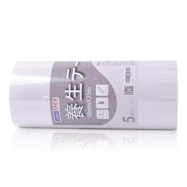 養生テープの採用基材:ポリエチレンクロス、粘着剤:アクリル油、テープの厚さ:0.16mm、粘着力:2.2N/cm(弱粘着)、引っ張強さ:30N/cm、伸び率:10%