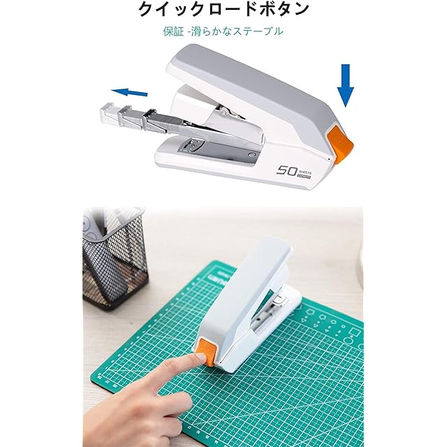 [50枚綴じ] –標準のホッチキスの2倍で、職場、自宅、または教室でのデスクトップでの使用に最適です。箱から出してすぐに、1000本24/6(幅11.5mm、針足6mm)の標準サイズのホッチキスを使用できます、 500本24/8(幅11.5mm、針足8mm)のステープル付き。