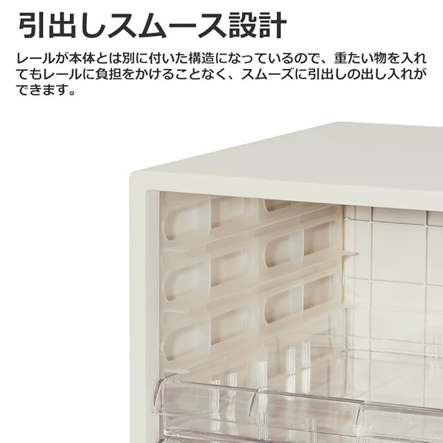 材質:100%再生樹脂(本体・引き出し=100%再生PS、レール=100%再生PP)