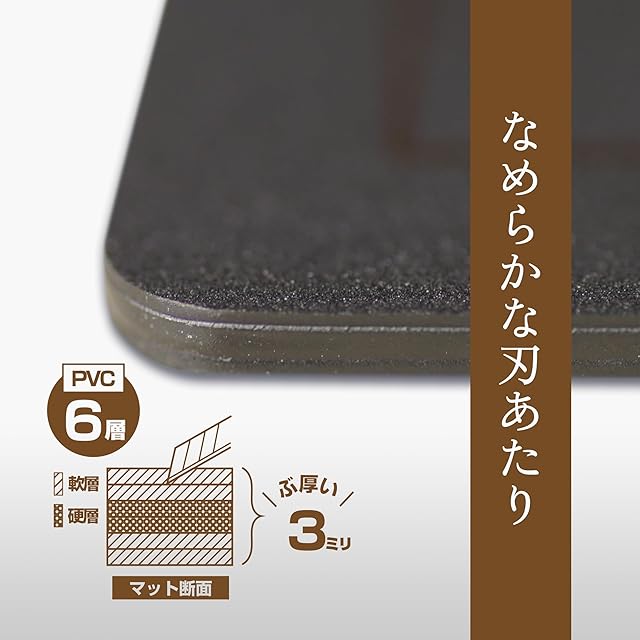 【極上の切り心地】素材は硬さの違うPVCを6層構造に。切り心地の良さにこだわり抜きました。