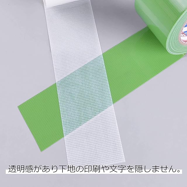 養生テープの採用基材:ポリエチレンクロス、粘着剤:アクリル油、テープの厚さ:0.16mm、粘着力:1.7N/cm(弱粘着)、引っ張強さ:30N/cm、伸び率:10%