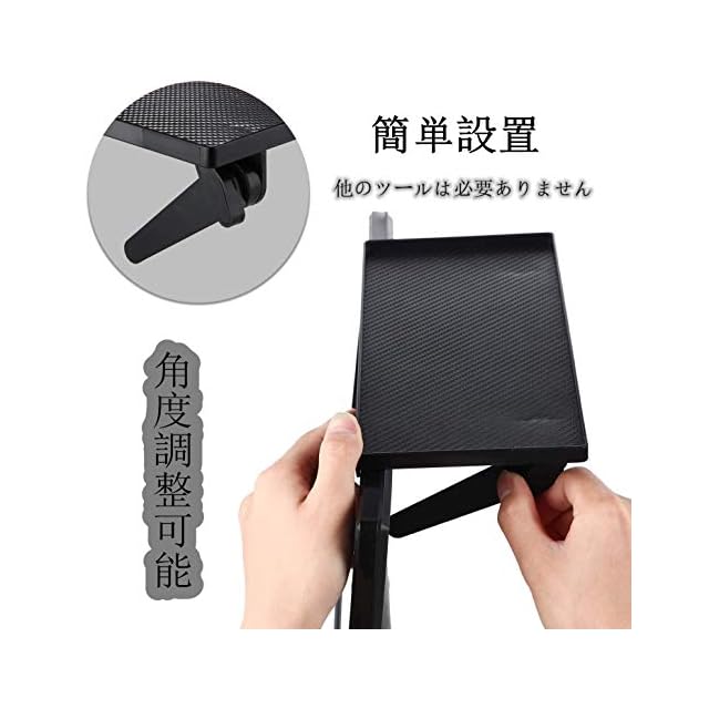【取り付け簡単】どなたでも簡単に設置出来ます。ボードと支える部分を接合するところにあるハンドルを折って、ディスプレの形状によって適当な角度を調整して、ハンドルを折り戻して固定完了です。