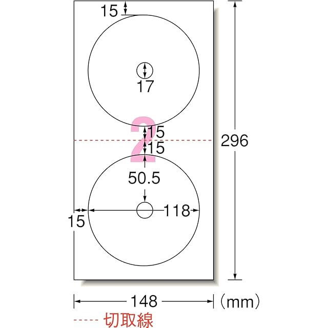 ラベルサイズ:外径118mmφ 内径17mmφ(1列×2段)