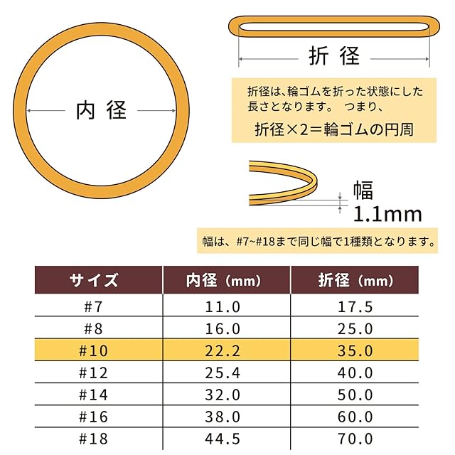 サイズ #7( 7番 ) : 内径約11mm / 折径約17.5mm / 切幅約1.1mm / 厚さ約1.1mm