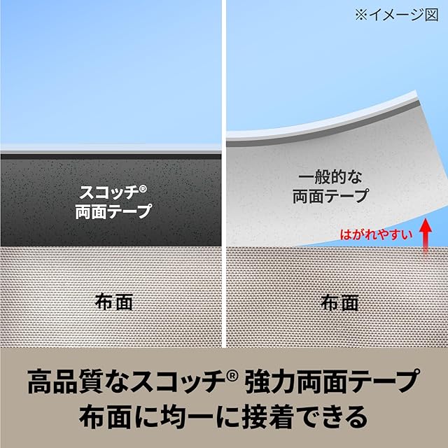 【シミ・ムラなく、キレイに仕上がる!】接着剤を使うと、どうしても布にできてしまうのりのシミやムラも、布用両面テープで解決!