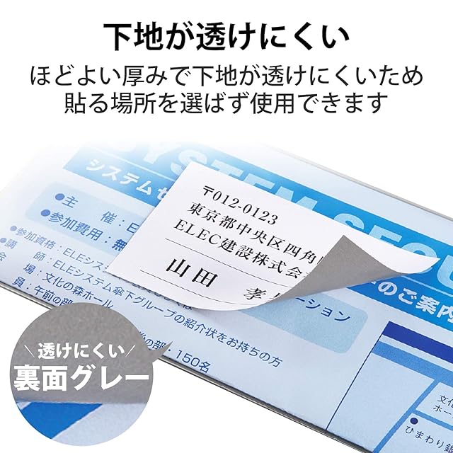 裏面特殊加工で透けない。貼る場所を選ばない、便利な"宛名・表示ラベル"。