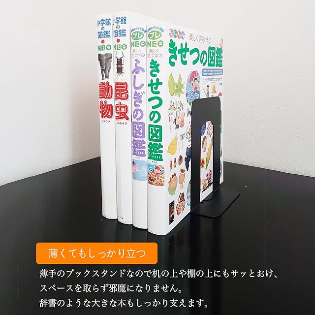 【丈夫で長く使えるスチール素材】 頑丈な金属製でしっかりとした安定感があり、大きめの書籍も安心して立てられます。