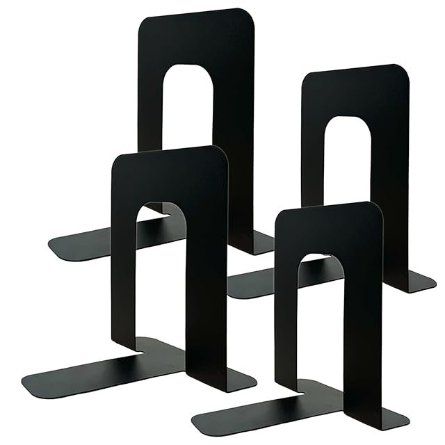 ブックエンド 4個セット 卓上 倒れない 金属製 滑り止め付 高さ16㎝ 中サイズ ブックスタンド 本立て T字 黒