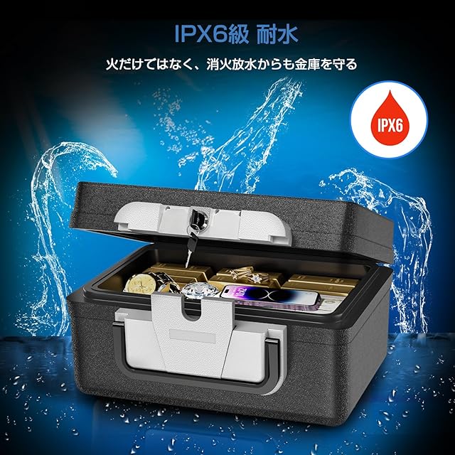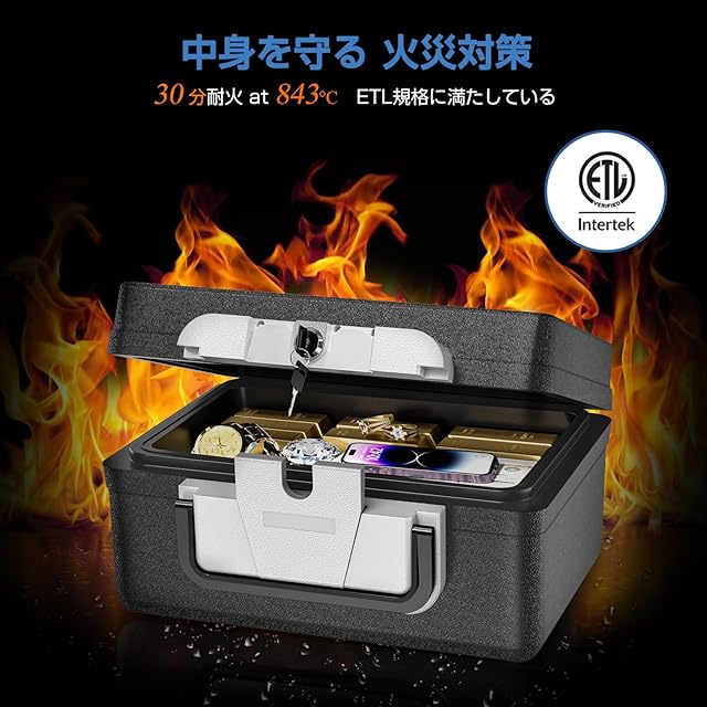 【火災や水害対策】 ETL規格 (843°C) 30分耐火テスト合格のため、火災から大切な物を守ります。IPX6防水機能:水害にも強く、大切なものをしっかり保護します。
