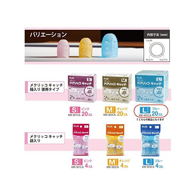プラス 紙めくり 指サック リング型 メクリッコキャッチ Lサイズ 20個入り ブルー 35-886