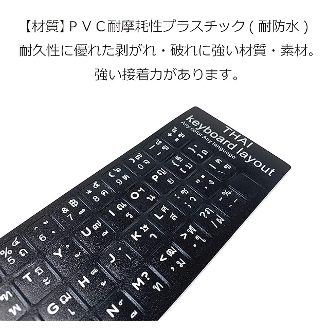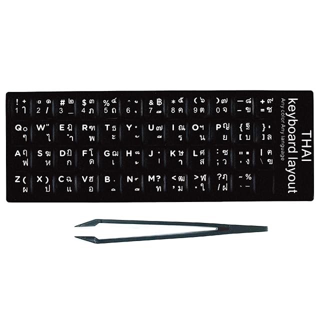 タイ語 キーボード シール ステッカー ラベル タイ文字 黒地 白文字 貼り付け用ピンセット付属 ブラック (タイ語)