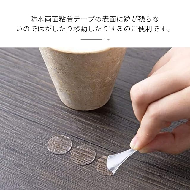 ご注意: この丸型両面テープは、小物に最適ですが大きな物や貴重品などの固定は、慎重に利用してください。