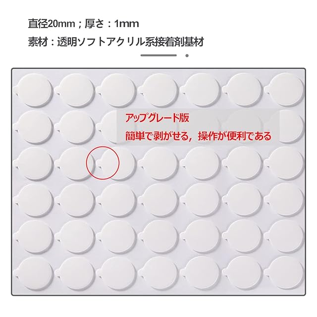 使用簡単: 小さくて丸く、簡単で剥がせる、使いやすく,組み合わせて使用することもできます。木製品、ガラス、セラミックタイル、金属、プラスチック、紙類などまで幅広い範囲で使える (壁紙へのご使用を慎重に),跡のない貼り付け、表面を傷つけず。