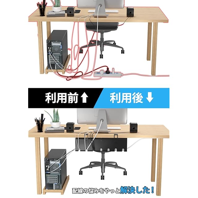 【配線をスッキリになるケーブルトレー】ケーブルや電源タップを配線していると、足元やデスク上にアダプタや配線があり、見た目にも乱雑ですし掃除も面倒です。このケーブルトレーを使って収納することにより、配線がすっきりし、卓上がきれいになります。子供の感電やペットの噛まれ切りなどしっかり避けます。足元とデスクがスッキリした気分は、より作業効率が向上させます。