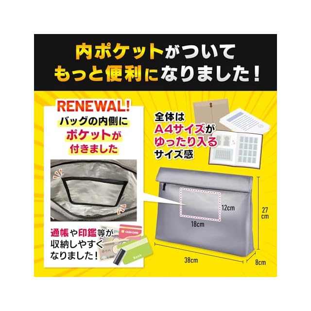 Gooder 万事富士 【内ポケット付】 耐火バッグ 【元消防士/防災士監修】 日本国内検査 38*27*8大容量 耐火金庫 防火袋 耐熱袋 防水袋 防災バッグ 貴重品ボックス 貴重品入れ 家庭用 オフィス
