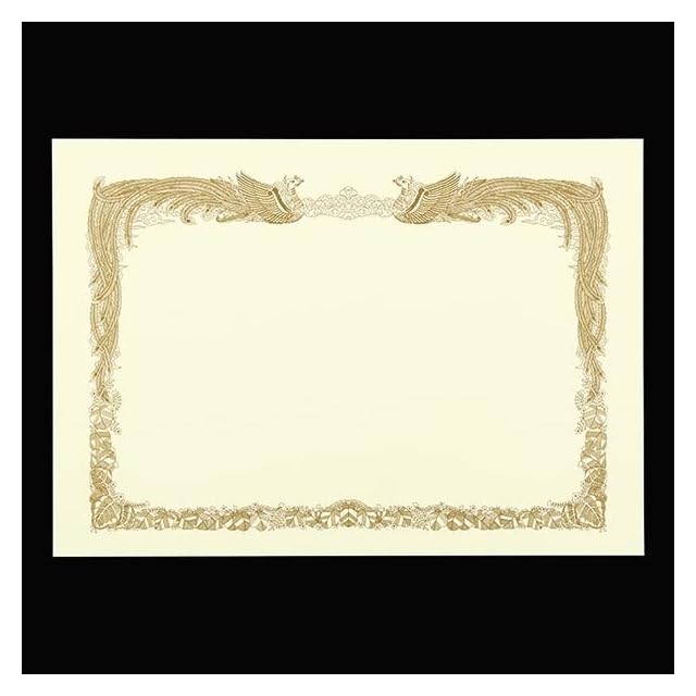 レーザープリンター・インクジェットプリンター兼用の賞状用紙です。落ち着いた高級感のあるクリーム色の用紙と立体感のある本格的な鳳凰枠の賞状です。
