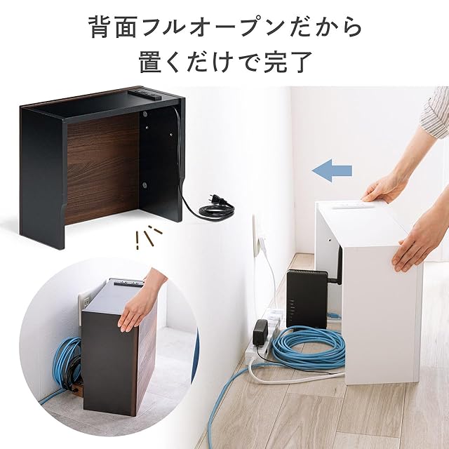 商品名:サンワダイレクト ルーター 収納 ケーブルボックス 木製 コンセント付き 幅40×高さ33×奥行18cm 配線隠し 木目調 ダークブラウン 200-CB044DBRM