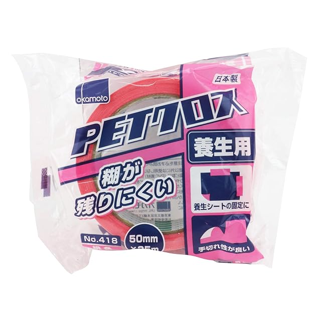商品名:オカモト 養生用テープ PETクロス 桃色 50mm×25m No.418