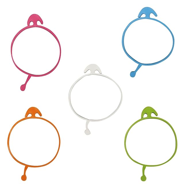 留めたいところで、巻きつけ引っ掛けるだけで留まります。通常の輪ゴムのように輪の中に通してグルグルとネジって巻くことなく、ワンタッチで留めることができ、外すときもワンタッチで簡単に外すことが出来る便利な輪ゴムです。