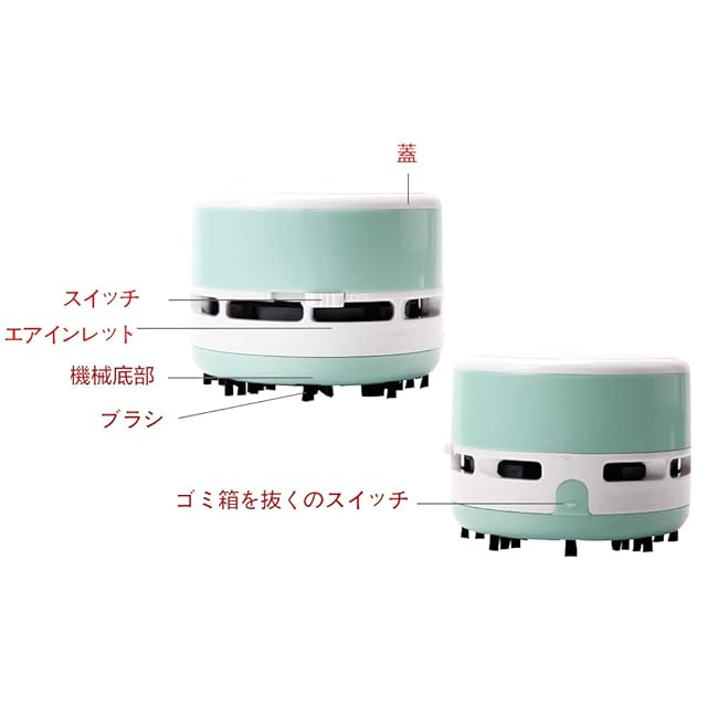 Tenwin 卓上 デスクトップ 吸引力 コンパクト コードレス デスク 卓上掃除機 ハンディ掃除機 キーボード パソコン 掃除用品 吸引力 ミニクリーナー クリスマス プレゼント(ミドリ)
