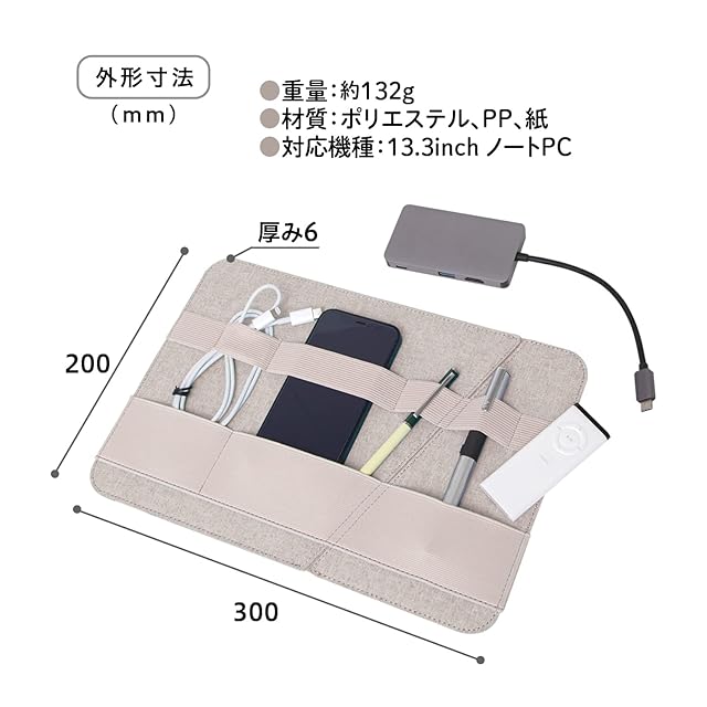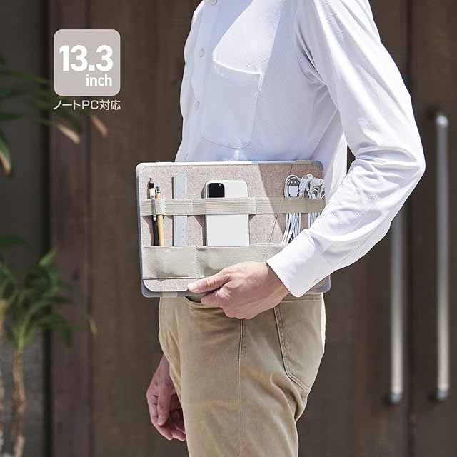 ・13.3inchのノートPCが収納できるポケット ・A4クリアホルダーが収納できる前面ポケット ・背面にはキャリーバッグ用の固定ベルト付き