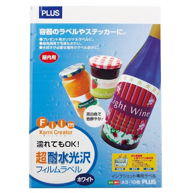 水に強いタイプだから、使用シーンは様々なフィルムラベルです。 水滴がかかってもインクのにじみがほとんどありません。 インクジェット用なので発色が良く、光沢があり、見た目も美しく仕上がります。 超速乾タイプのため、プリントしたらすぐに貼り付けていただけます。 オリジナルラベルだけでなく店頭販売時や展示会などのPOPにも使用していただけます。