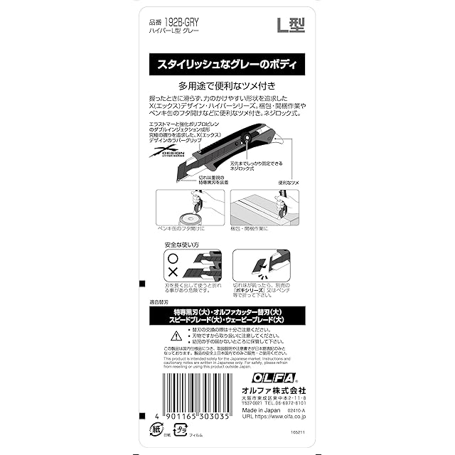 オルファ(OLFA) ハイパーL型 グレー ネジロック式 特専黒刃 192B-GRY