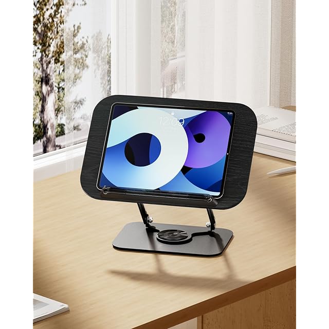 viozon ブックスタンド 書見台 読書台 360度回転式台座 無階段高さ調節 折りたたみ式 安定性抜群 持ち運びやすい ページ捲り簡単 アイロン台座 おしゃれ 黒