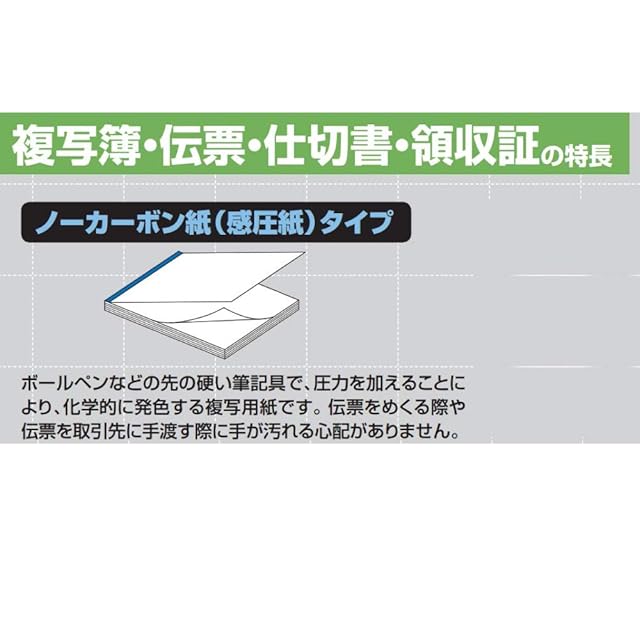 書くと圧力で発色するノーカーボンタイプの請求書。保管・保存に優れています。