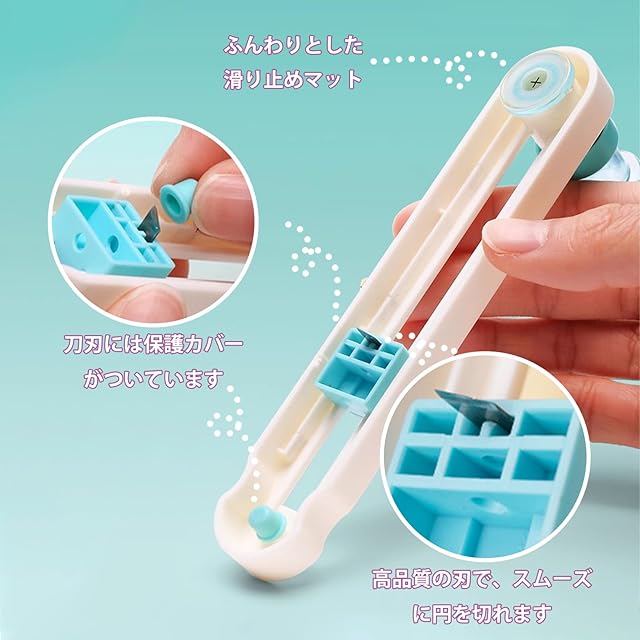 【使用範囲】直径2cmから20cmまでの完璧な円をカット出来ます。調整器を緩めてブレードを移動させることで、ご希望のサイズに調整可能です。注意:厚紙などの厚い紙はカットできません。紙以外の硬いものはブレードの鋭さに影響を及ぼす可能性があります。
