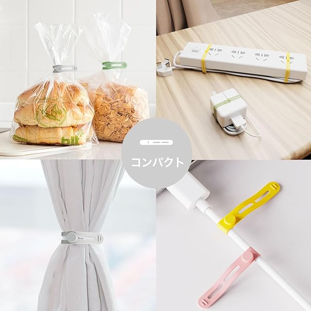 【万能ケーブルバンド】最新のボタンのデザインは多種な使い方を用意します。テレビ周りやドライブレコーダーでごちゃごちゃしがちな車の中など、幅広い場所で使うことができるのも特徴。更にフードバッグとじ、電化製品のコード、ドライヤー、ヘアアイロンのコード整理、文房具収納、カーテンタイなどとしてご活用いただけます。