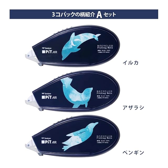 トンボ鉛筆 テープのり PiT エアー 本体 8.4mm×16m 強粘着 詰め替えタイプ (しっかり握れて軽い引き心地) イルカ・アザラシ・ペンギン リサイクル素材 HHA-341ATU