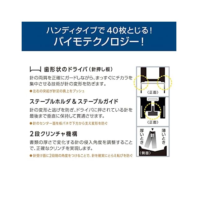 最大とじ枚数:40枚(一般的なコピー用紙換算) / とじ奥行:28mm(最大)