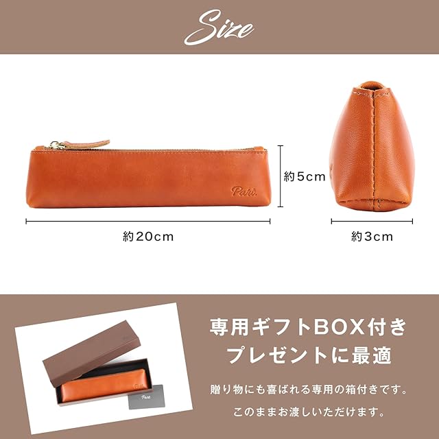 [Part.]ペンケース 革 本革 ビジネス 筆箱 レザー スリム シンプル コンパクト 無地 ナチュラル シック ブランド 大容量 軽量 おしゃれ プレゼント 贈り物 ギフト 化粧箱入り かわいい 黒 茶 大学生 キャメル