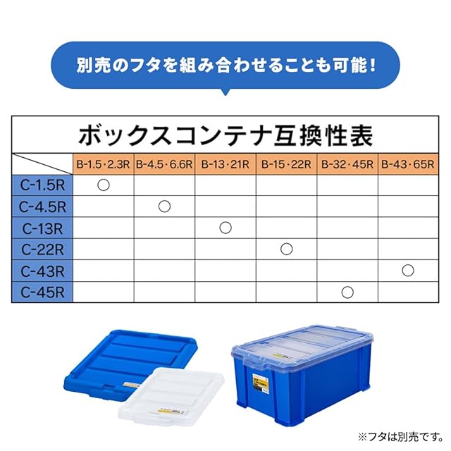 ※フタは別売りです。別売、BOXコンテナ用フタC-45R、C-45を取り付けられます。