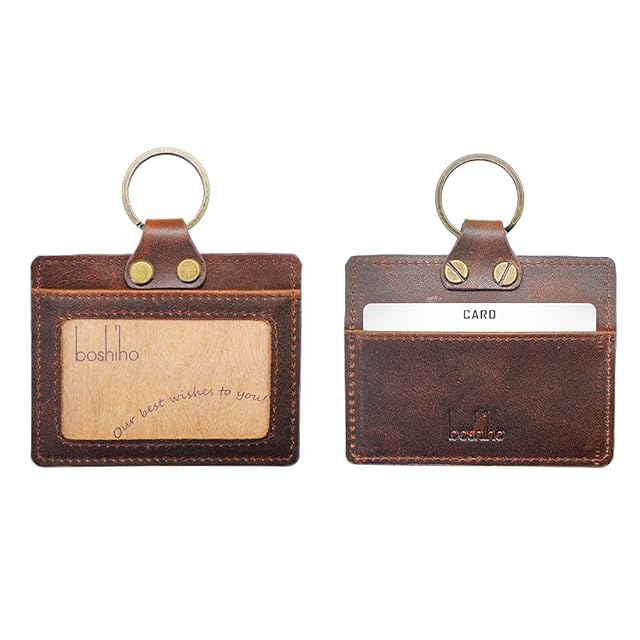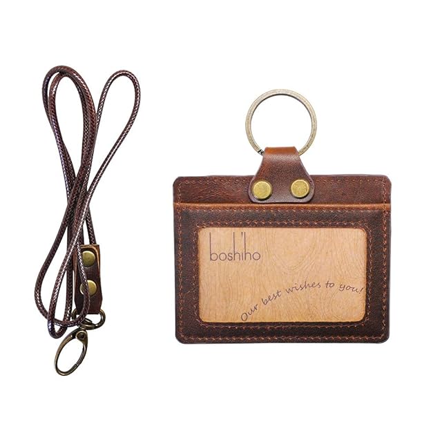 boshiho IDカードホルダー 横型 本革 2枚 IDケース入れ 収納 名札 社員証入れ 首掛け ネックストラップ付 通勤 通学 レディース メンズ