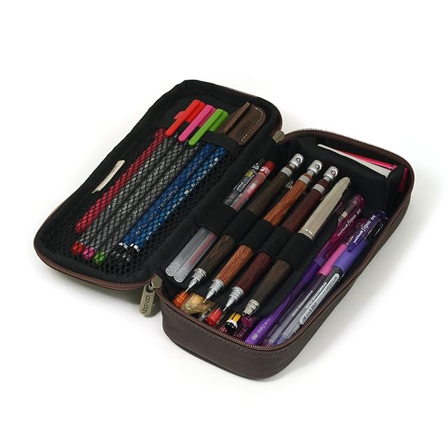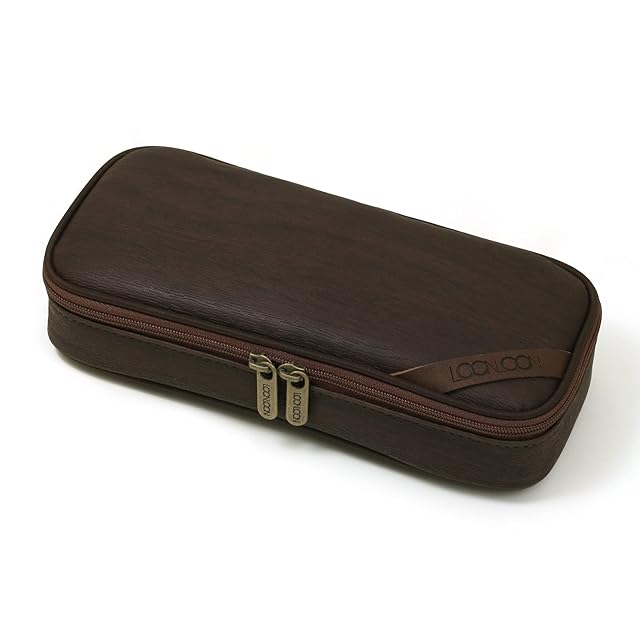 LOONLOON 664 ウッド ペンケース ダークブラウン 大容量 おしゃれ 二階建て 多機能 木目調