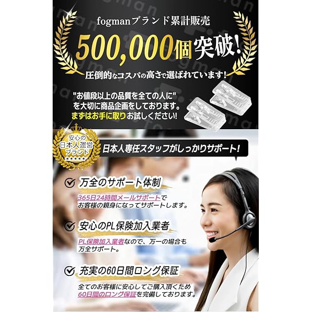 【安心の60日間返品返金】fogmanブランドより、迅速にお客様の元へお届けいたします。また本製品は購入から60日間の返品付き、万が一の際に備えてPL保険加入しております。商標登録第6354569号