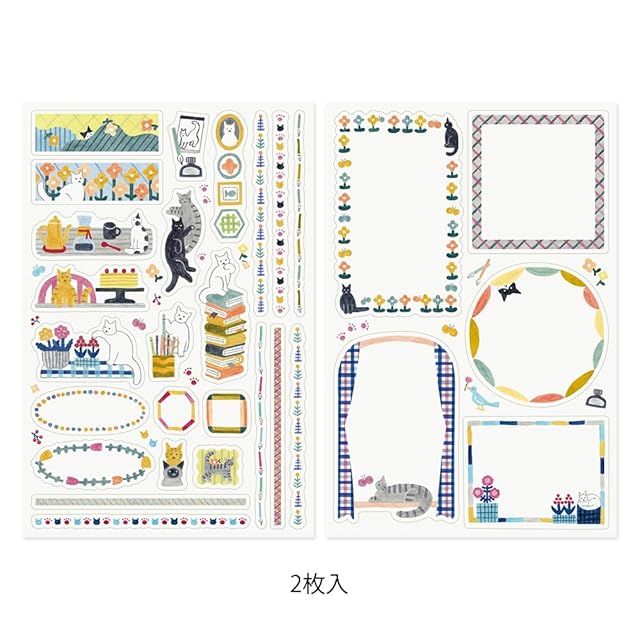 ミドリ シール ゆるログ ネコ柄 2枚入 82673006