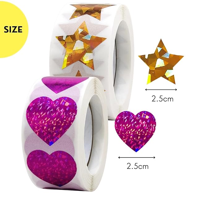 【キラキラ輝くホログラム仕様】光の角度で美しく反射するフィルム素材を使用。キラキラシールとして存在感抜群。星シール・ハートシールとして手帳やDIY、ラッピングにも最適です。