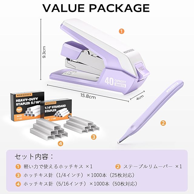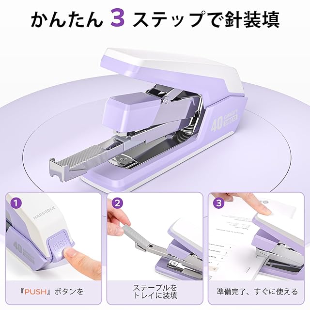 Marsrock ホッチキス 省力ホチキス 卓上 50枚とじステープラー 強力 大型ホッチキス 2000枚ホチキス針/リムーバー付き 高耐久 人間工学的 オフィス 自宅 教室 小冊子 製本用 パープル
