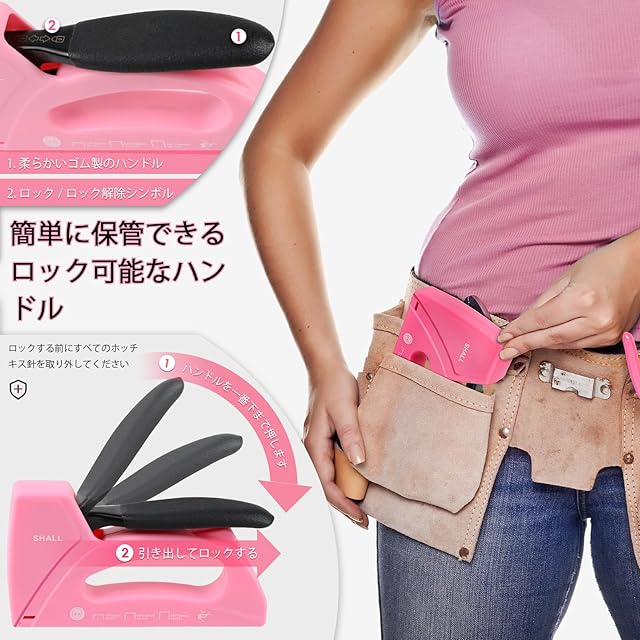 SHALL 軽量ホチキス 木に打てる ホッチキス ガンタッカ - ピンク木材用ステープルガンの室内装飾用ステープルガン、JT21 ステープル 1600 個、6、8、10 mm、ステープルリムーバー付き - クラフト、DIY、装飾用の布用ステープルガン