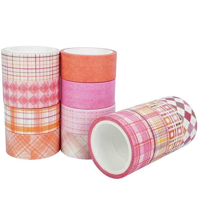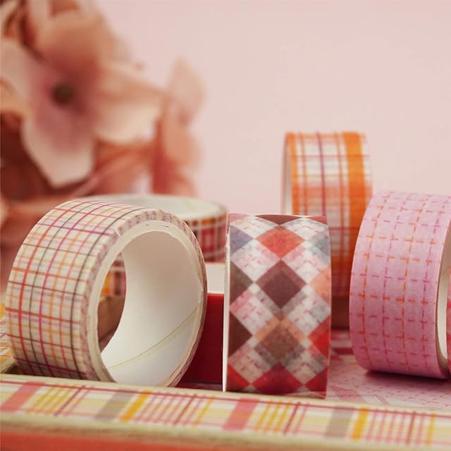 YUBX マスキングテープ 12個 セット 格子縞 和紙テープ ベース パターン DIYクラフト ジャーナル 手帳 プ ランナー スクラップブック ラッピング プレゼント装飾 (ピンク)
