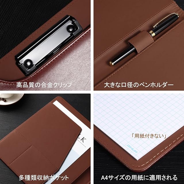 【RIHUA】 バインダー A4 クリップボード クリップファイル A4サイズの用紙に適用され バインダー ファイル 多機能フォルダー クリップボード a4 二つ折り PUレザー ビジネス バインダー (ブラウン)