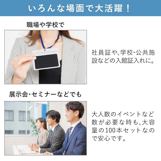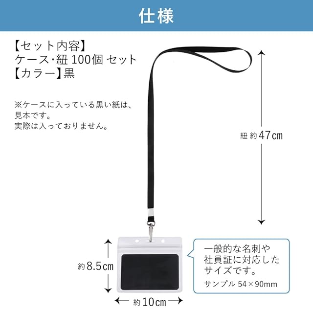 (アウプル) 社員証 名札 ホルダー 50枚 セット 横型 IDカード ケース ネック パスケース ストラップ カード 防水 名刺 ネームホルダー(黒)