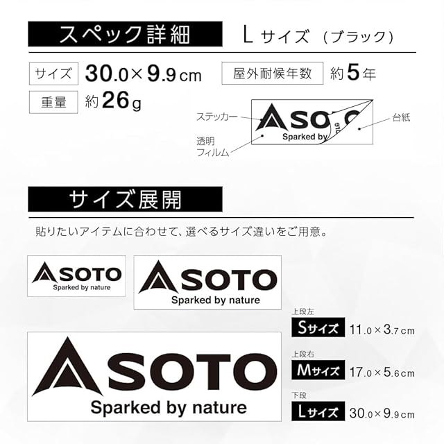 ソト(SOTO) ロゴ シール ステッカー SOTOカッティングステッカーL (30×9.9cm) ブラック ST-SLBK